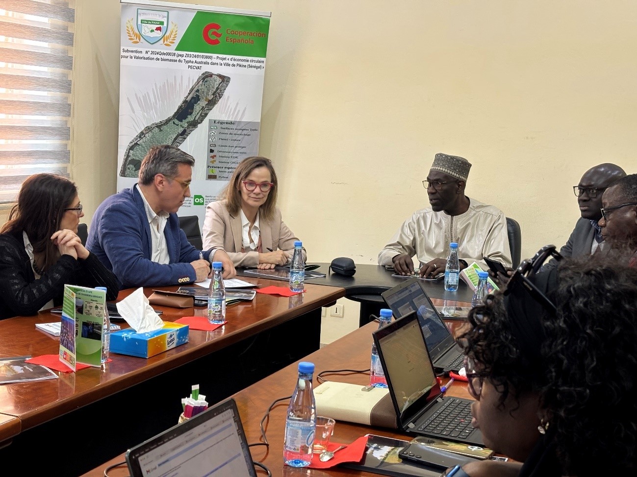 En el caso de Dakar, “se trata de un proyecto de valorización de la tifa mediante su transformación en productos útiles y comercializables: bio-carbón para las cocinas tradicionales, y materiales de construcción, como ladrillos y paneles aislantes”, explica Abdoulaye Timbo, alcalde de la ciudad de Pikine, durante una reunión con representantes de la AECID. La iniciativa ha sido apoyada por el programa PROTEC, que plantea emplear la naturaleza y un enfoque de economía circular para resolver problemas de desarrollo, creando empleo y generando ingresos. Anteriormente, además, se habían realizado los estudios previos para asegurar la viabilidad del proyecto gracias al apoyo del Pacto de los Alcaldes de África Subsahariana (COMSSA, según sus siglas en inglés)