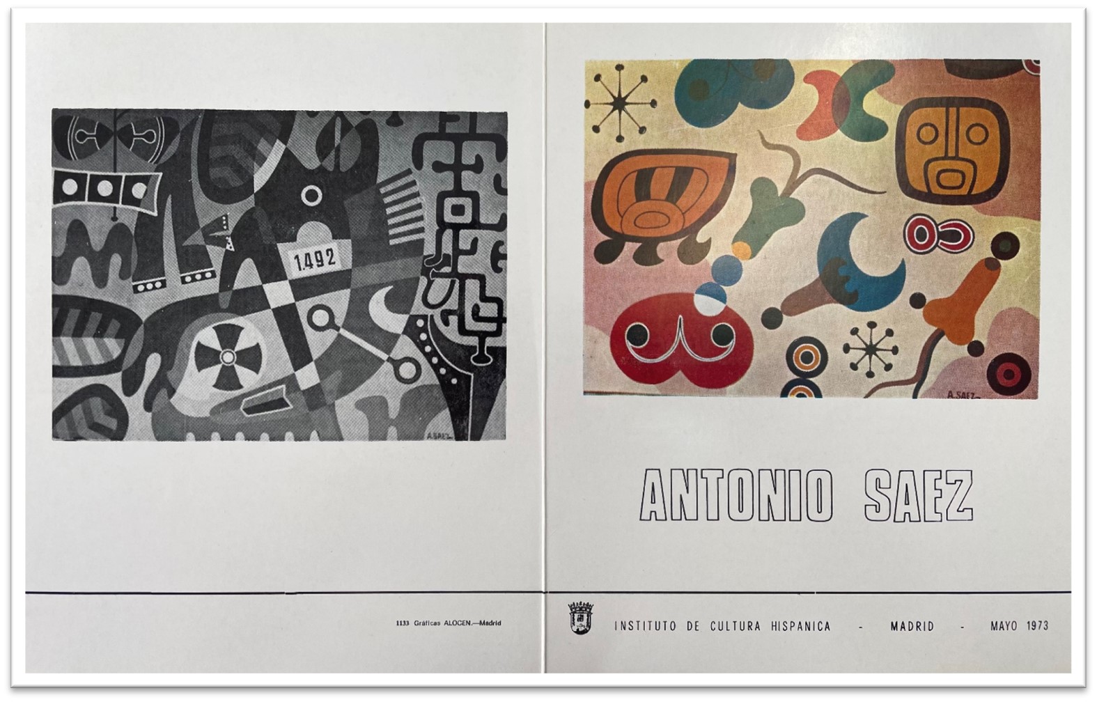 © Foto de Mª. Blanco. Portada y contraportada del díptico publicado por el ICH con motivo de la exposición del artista en mayo de 1973
